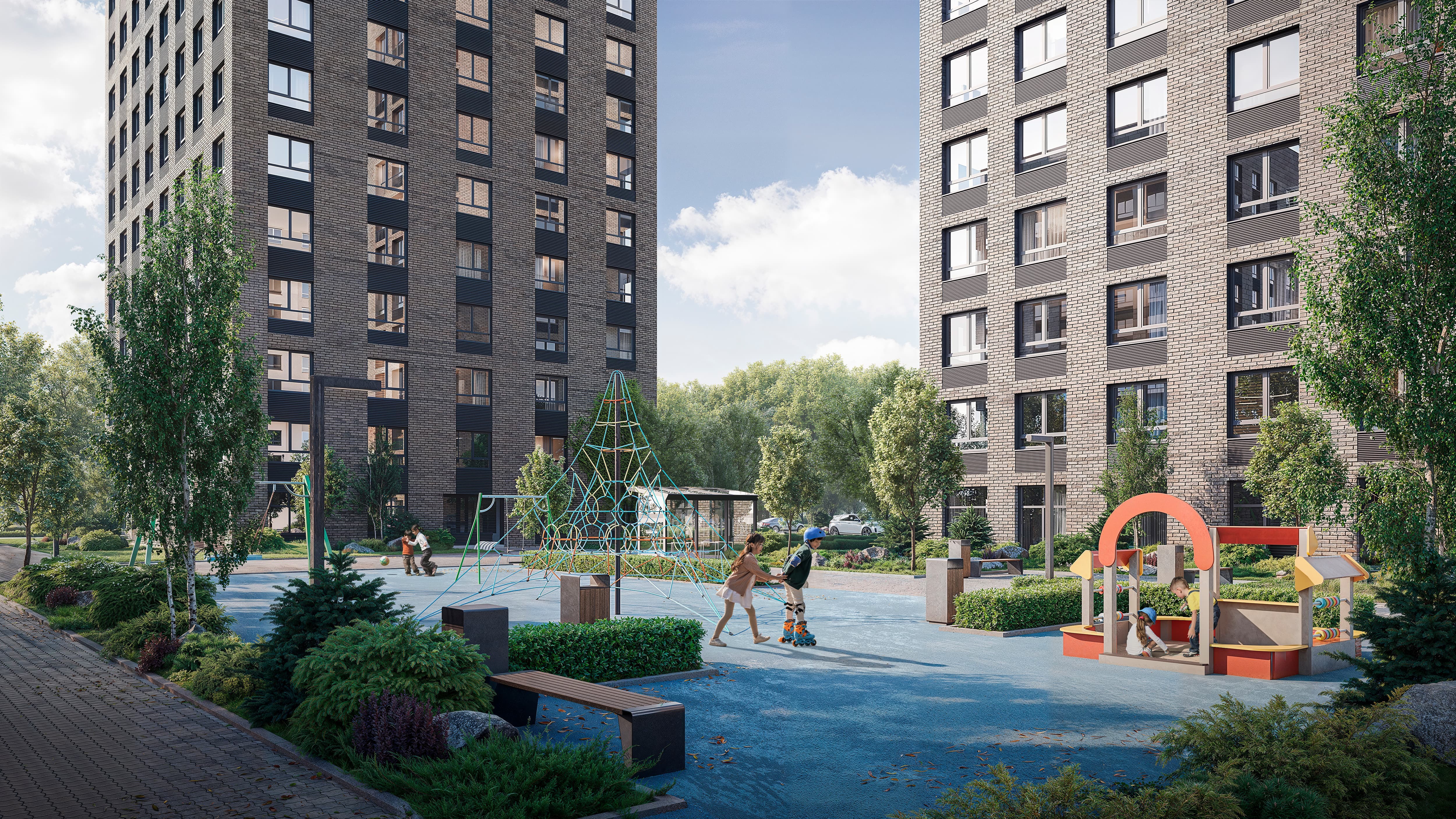 Современный ЖК оснащён всем необходимым для комфортной жизни: безопасные детские и спортивные площадки, уютные зоны для отдыха и зелёный бульвар создают идеальные условия для активного досуга и спокойного отдыха на свежем воздухе.